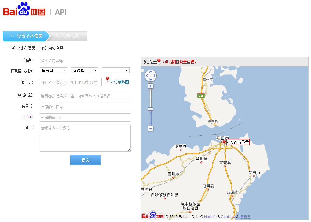 百度名片网址:http://api.map.baidu.com/mapCard/setInformation.html